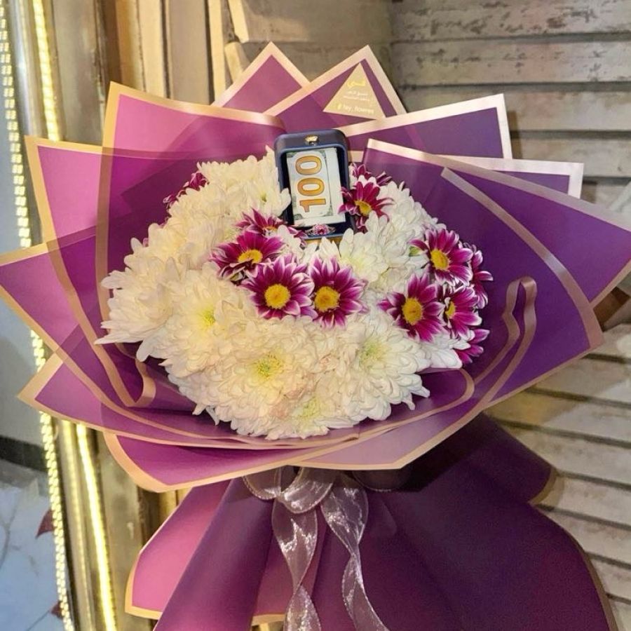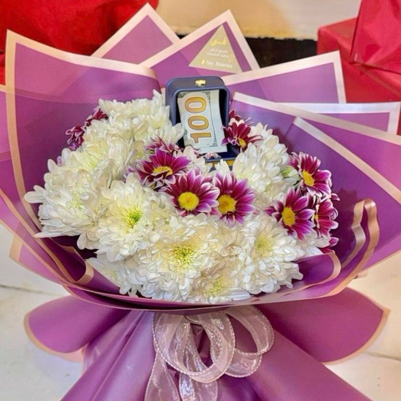 باقة كريز أبيض+ بنفسجي +$ 100