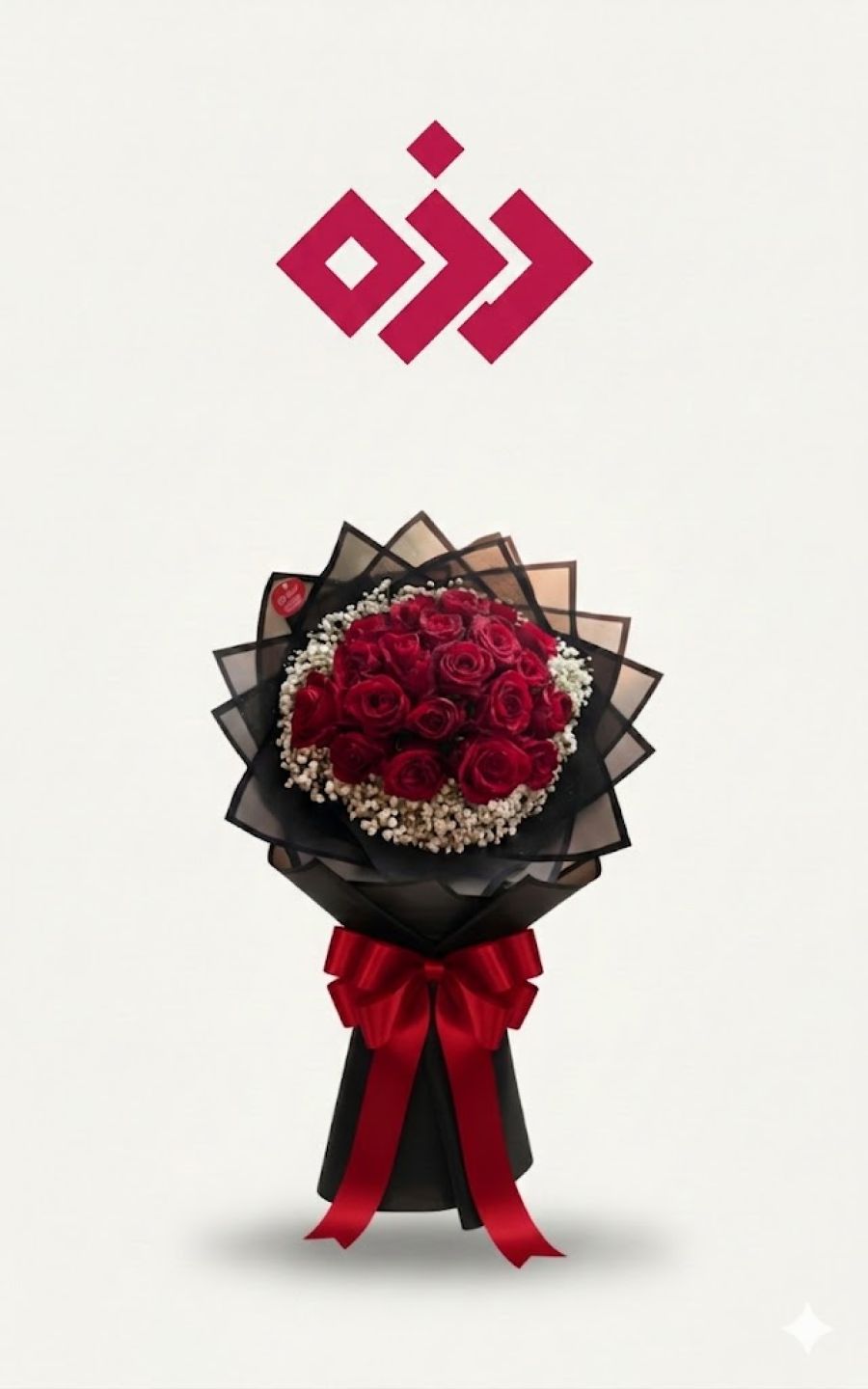 بوكيه ورد احمر مكون من 20 ورد حمراء