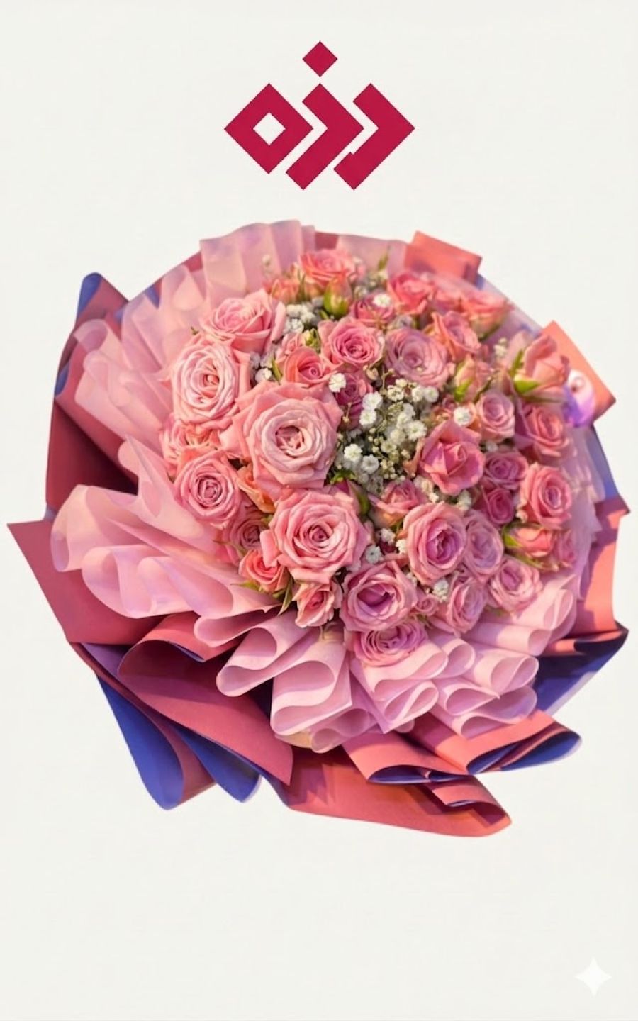 باقة بيبي روز وردي مكونة 12 غصن عدد الورد من 45 الى 65 ورد