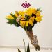 مسكت زهور عباد الشمس المميزة تحتوي على ٣ إلى ٥ وردات عباد شمس مع تزين بالداودي الأصفر